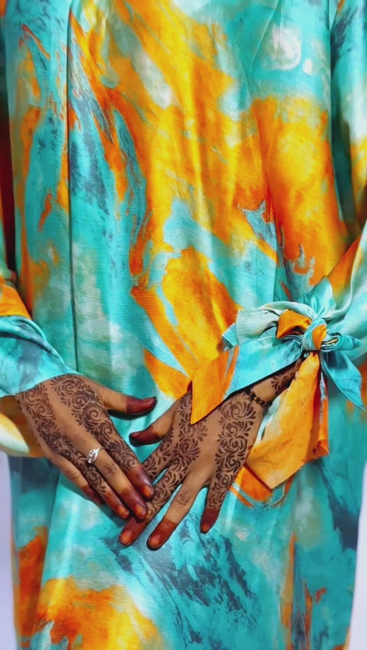 The Nour dress was designed for the minimal babe with some spice. Featuring elegant ties at the sleeves and neck, she can be dressed up or down with the right accessories.